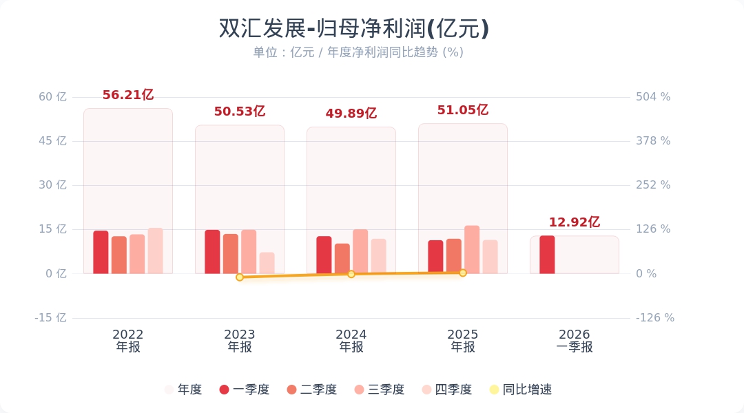 蓝鲸新闻4月28日电,双汇发展(000895.SZ)披露一季报,公司2026年一季度实现营业收入145.49亿元,同比增长1.96%;归母净利润12.92亿元,同比增长13.59%。一季度,公司肉类产品总外销量88万吨,同比增长14.89%。