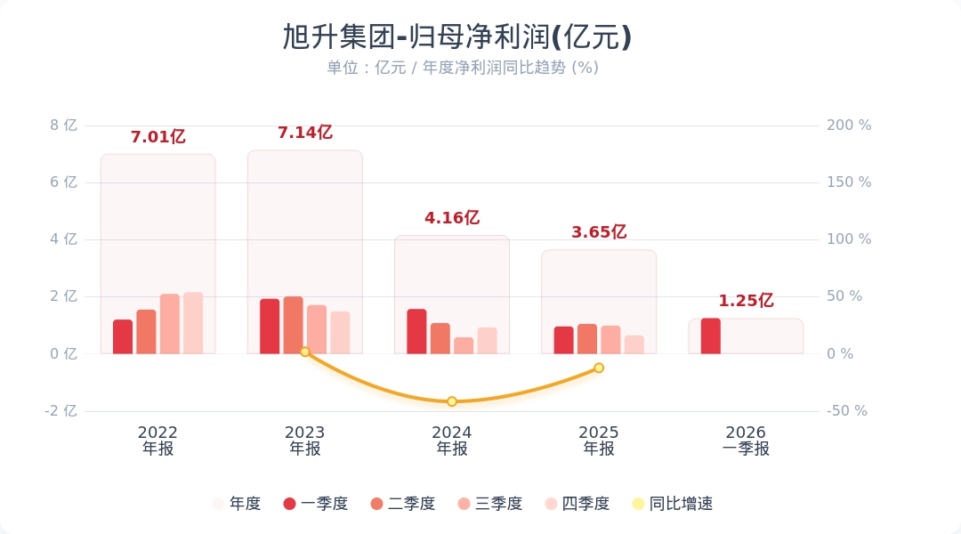 蓝鲸新闻4月28日电,旭升集团(603305.SH)公告称,2026年第一季度实现营业收入12.19亿元,同比增长16.45%;归属于上市公司股东的净利润为1.25亿元,同比增长30.87%。业绩变动主要系业务增长,收入增加所致。小财注:公司Q1净利润1.25亿,2025年Q4净利润0.65亿,据此计算,Q1净利润环比增长91%。