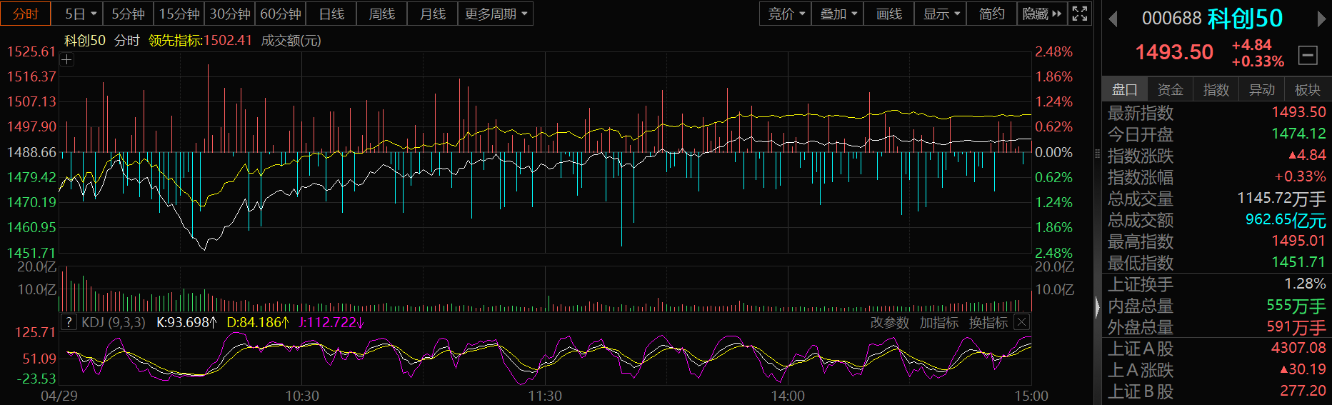 《科创板日报》29日讯,今日,科创50指数收涨0.33%。盘面上,光伏设备、锂电池等新能源赛道普涨,固德威涨超15%,艾罗能源涨超14%,万润新能、容百科技等跟涨。半导体板块表现活跃,裕太微涨超16%,盛科通信涨超14%。个股表现上,受昨日并购公告影响,日联科技20CM涨停,公司拟并购标的主营半导体测试设备,产品可应用于光通信领域。卓然股份20CM跌停,公司公告称预计无法在法定时限内完成2025年年度报告披露工作。