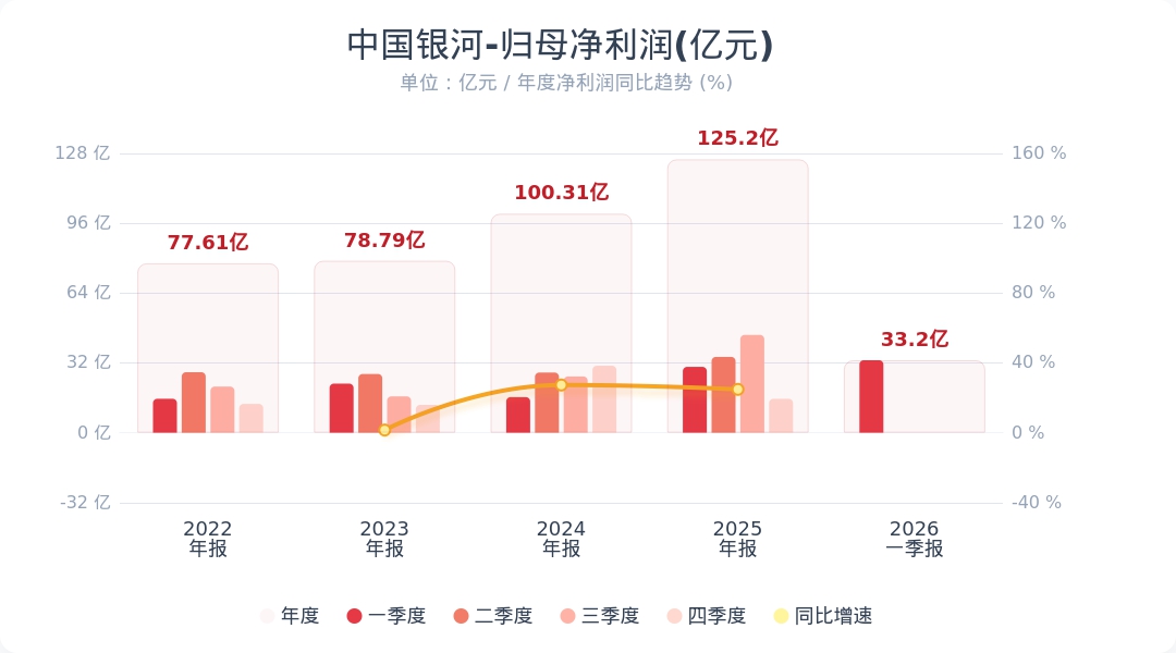 蓝鲸新闻4月29日电,中国银河(601881.SH)公告称,2026年第一季度实现营业收入73.55亿元,同比增长15.66%;归属于上市公司股东的净利润为33.20亿元,同比增长10.09%。小财注:公司Q1净利润33.2亿,2025年Q4净利润15.51亿,据此计算,Q1净利润环比增长114%。