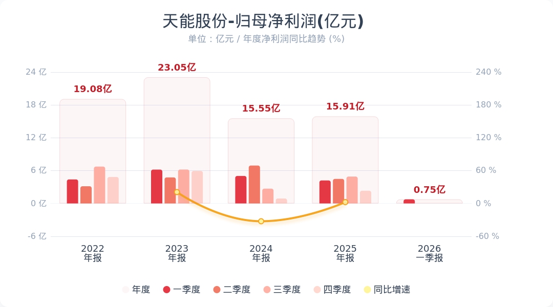 蓝鲸新闻4月29日电,天能股份(688819.SH)公告称,2026年第一季度实现营业收入97.45亿元,同比下降4.82%;归属于上市公司股东的净利润为7508.37万元,同比下降82.14%。业绩变动主要受宏观经济环境影响,报告期内公司销售规模下降,叠加硫酸等原材料价格攀升,导致主营业务毛利承压下滑。此外,受先进制造业企业增值税加计抵减等政策影响,其他收益同比下滑,公司整体盈利空间受到进一步挤压。小财注:公司Q1净利润0.75亿,2025年Q4净利润2.32亿,据此计算,Q1净利润环比下降67%。