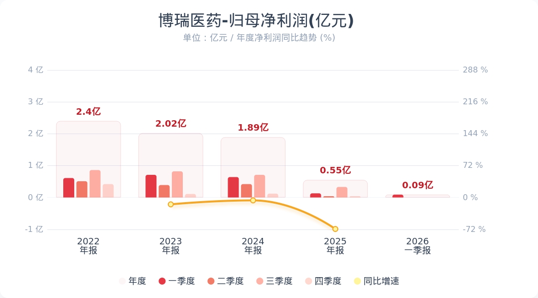 蓝鲸新闻4月29日电,博瑞医药(688166.SH)公告称,2026年第一季度实现营业收入3.25亿元,同比增长30.52%;归属于上市公司股东的净利润为929.37万元,同比下降28.29%。业绩变动主要系产品销售收入增长所致,其中抗真菌类原料药产品由于商业化需求阶段性波动,本期收入较去年同期增长92.05%。小财注:公司Q1净利润0.09亿,2025年Q4净利润0.04亿,据此计算,Q1净利润环比增长121%。