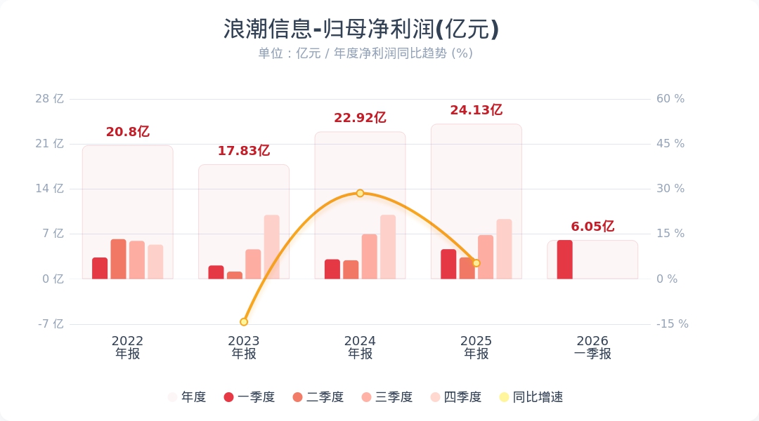 蓝鲸新闻4月29日电,浪潮信息(000977.SZ)公告称,2026年第一季度实现营业收入354.70亿元,同比下降24.30%;归属于上市公司股东的净利润为6.05亿元,同比增长30.74%。小财注:公司Q1净利润6.05亿,2025年Q4净利润9.31亿,据此计算,Q1净利润环比下降35%。